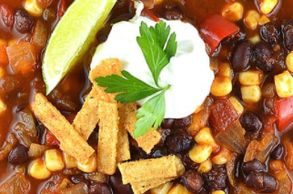 6. Ladle the soup into bowls. Top with avocado slices, tortilla strips and fresh cilantro. Add a dollop of diary-free sour cream if preferred.