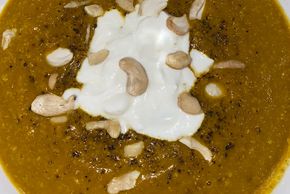 2. Add oil to a large saucepan and saute onion and butternut squash for about 10 minutes.